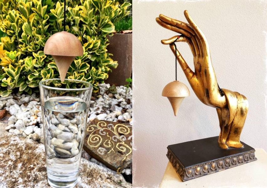 Das Pendel ist mit Globuli aus sieben verschiedenen heiligen Quellen befüllt: