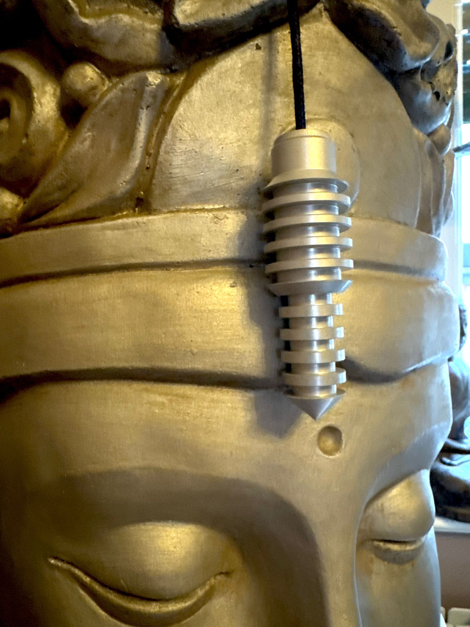 Das Pendel hat eine Innenkammer. Nach dem Abschrauben der Kappe können wir eine Probe des Heilmittels hineingeben und dessen heilende Schwingungen auf einer weißen Trägerwelle an den kranken Organismus senden.